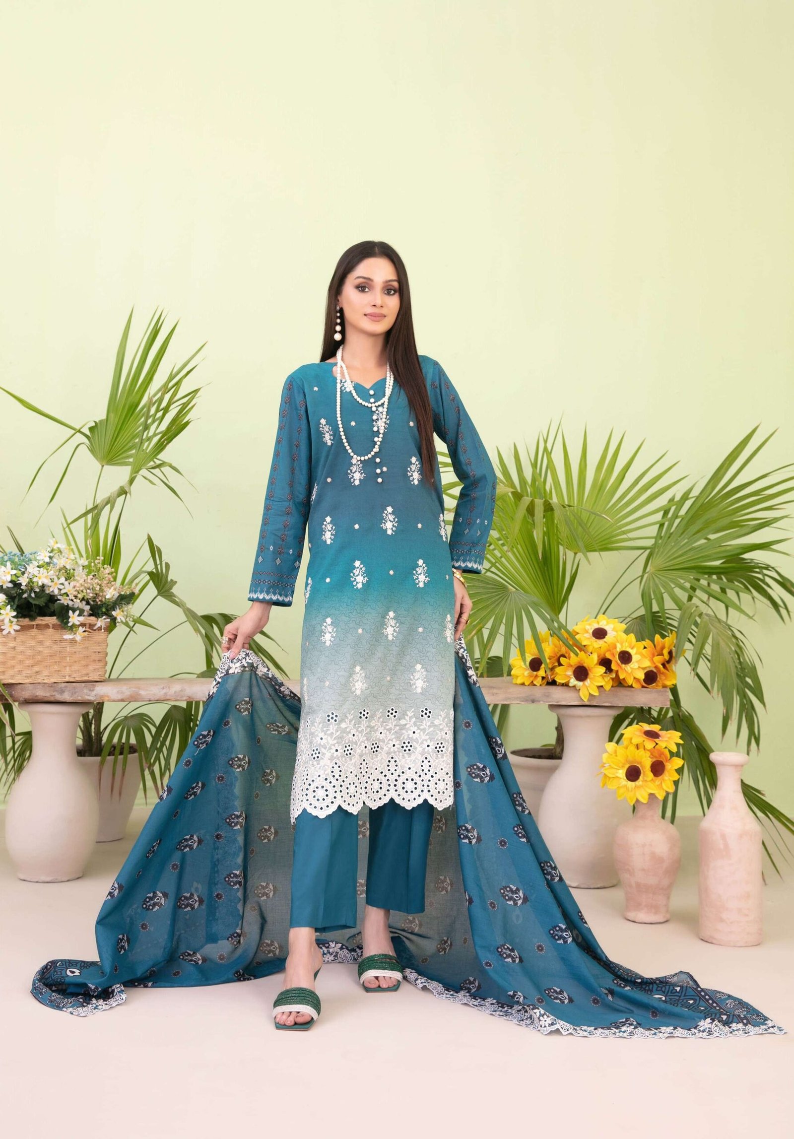 Tawakkal New Embroidered Digital Printed Lawn shirt – Cut Work Embroidered Digital Printed Lawn Dupatta